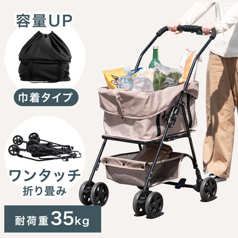 ワンタッチ 折り畳み式 大容量 ショッピングカート 巾着タイプ 4輪 軽量 耐荷重 35kg 取り外し 買い物中 高齢者 折り畳み 折りたたみ コンパクト 84000011〔マロンベージュ〕【予約】1月上旬※1/11までに出荷予定