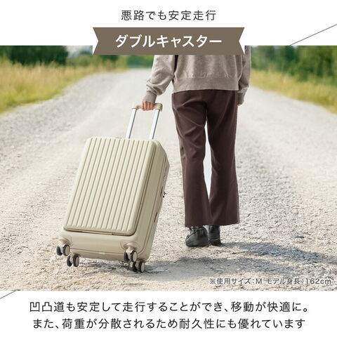 | 備考 | ※配送は全て宅配便(1人)での玄関渡しとなります。大型商品や重量商品、エレベーターの無い2階以上にお住まいのお客様は、玄関口までの搬入をお手伝いをお願いしております事をご了承ください。 ※ 内装中央部に付いているファスナーはメンテナンス用ですので開閉しないでください。 ※マチアップした場合、スーツケース内の荷物量によって機内持ち込みサイズを超える場合がございます。 ※機内持ち込み対応はSサイズのみとなります。但し、容量拡張時は機内持ち込み出来かねる場合がございます。 ※寸法はキャスター・ハンドル・台座込みの外寸表記になります。測り方や荷物の詰め具合により多少の誤差が生じる場合がございます。あらかじめご了承ください。 ※航空会社によって機内持ち込みサイズや重量等の規定が異なる場合がこざいます。 ご購入前に、ご利用の航空会社の規定をご確認いただくことを推奨しております。 ※記載しているサイズ表記は、荷物を詰めていない状態で計測しております。 荷物を詰め具合によっては、本体材質の性質上、キャリーケースが膨らみサイズが変わる場合がございますのでご注意ください。 ※パスワードを忘れると解錠できません。ご自身で設定したパスワードは必ず管理してください。 ※キャスターロックはキャスターが動くのを止める補助機能です。完全に走行を止めるものではありませんので、ご了承ください。 ※ロック付きキャスターは、キャリーバー側の2輪のみです。 ※キャスターロック部分は、乱暴に扱わないようお願いいたします。故障の原因となります。 ※本体内type-Aケーブルはiphone15以降のApple製品に対応しておりません。 ※本体内type-Cケーブルを使用する場合は、type-Cポートに接続してください。 |