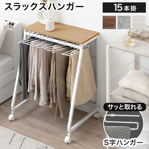 スラックスハンガー 15本掛け コンパクト スリム パンツラック ズボンハンガー ボトムスハンガー 衣類 収納 クローゼット タオルハンガー ラック パンツ スラックス ズボン キャスター付 84300015〔ナチュラル(15本掛け)〕【予約】1月上旬※1/11までに出荷予定