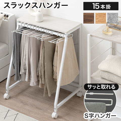 スラックスハンガー 15本掛け コンパクト スリム パンツラック ズボンハンガー ボトムスハンガー 衣類 収納 クローゼット タオルハンガー ラック パンツ スラックス ズボン キャスター付 84300015〔ホワイトウォッシュ(15本掛け)〕【予約】1月上旬※1/11までに出荷予定