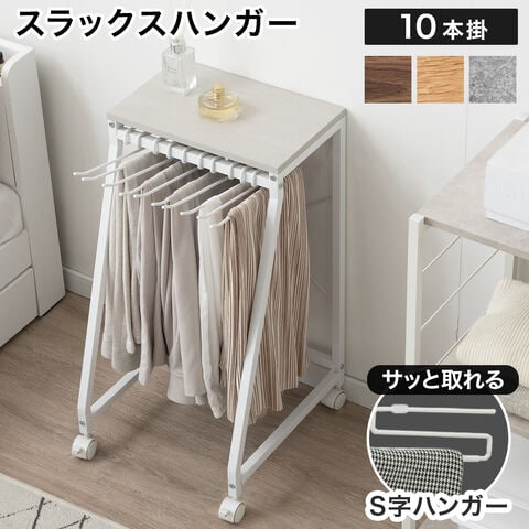 スラックスハンガー 10本掛け コンパクト スリム パンツラック ズボンハンガー ボトムスハンガー 衣類 収納 クローゼット タオルハンガー ラック パンツ スラックス ズボン キャスター付 84300047〔ホワイトウォッシュ(10本掛け)〕【予約】1月上旬※1/11までに出荷予定