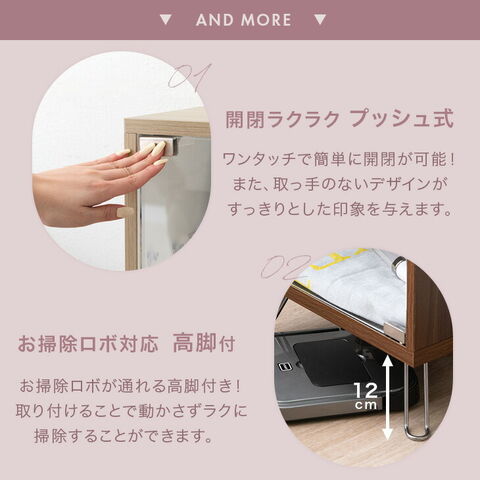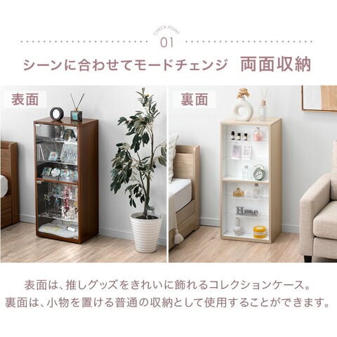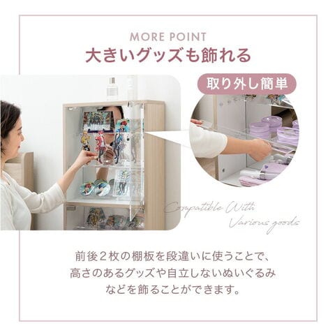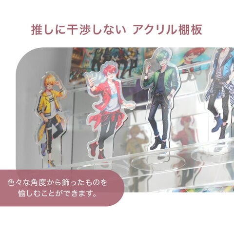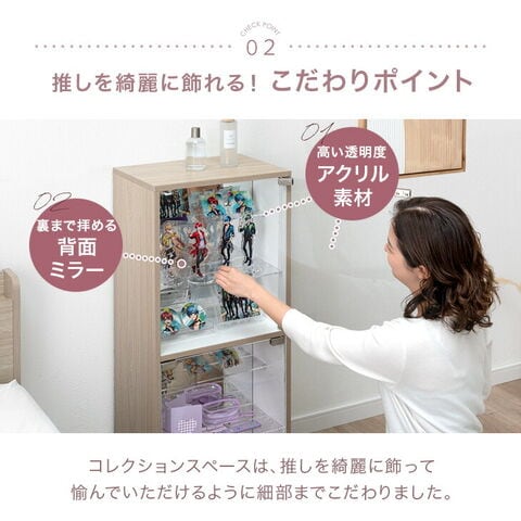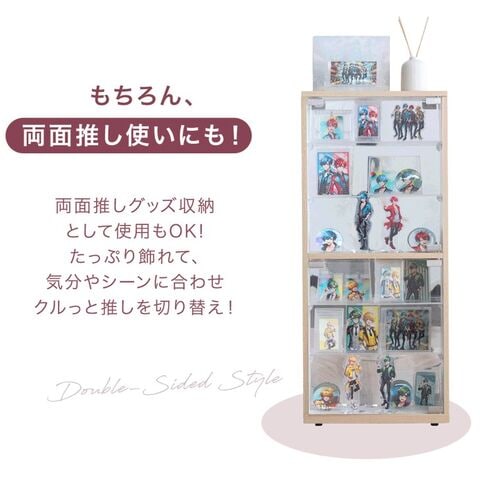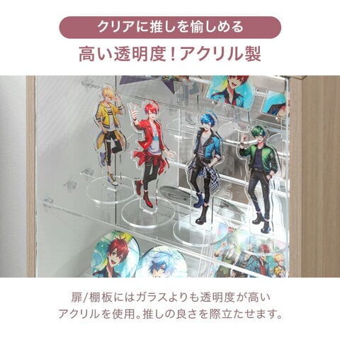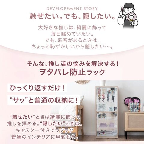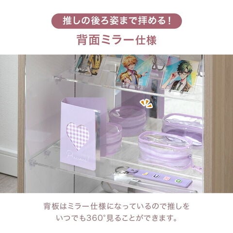 推せる&隠せる ヲタバレ防止ラック ・クリア&安全 アクリル棚板/扉 ・推しの裏まで拝める 背面鏡 ・倒れても安心!割れない鏡 ・移動ラクラク! キャスター付 ・脚を付けてお掃除ロボにも対応! ・取り出しラクラク マグネット扉 ・お部屋に馴染む 木目調デザイン |