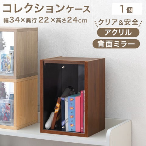 【即納】 木目調 コレクションケース 背面ミラー付 アクリル ディスプレイケース コレクションケース 推し活 収納ボックス 卓上 小型 透明 アクリルスタンド 84300040〔ウォールナット〕