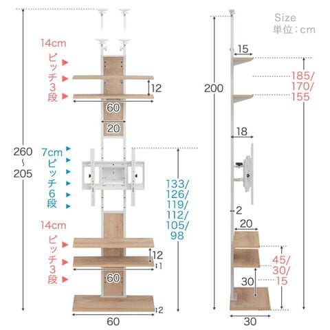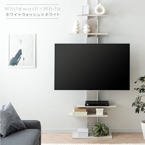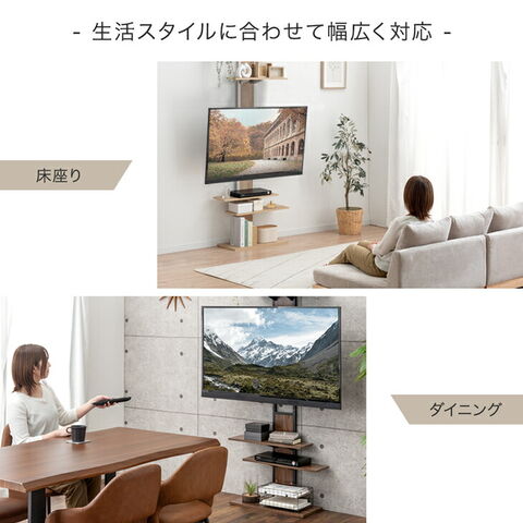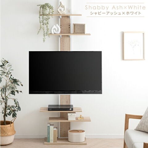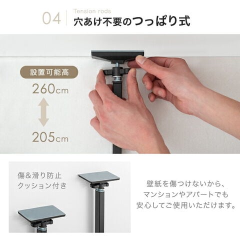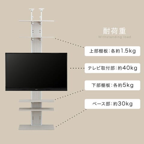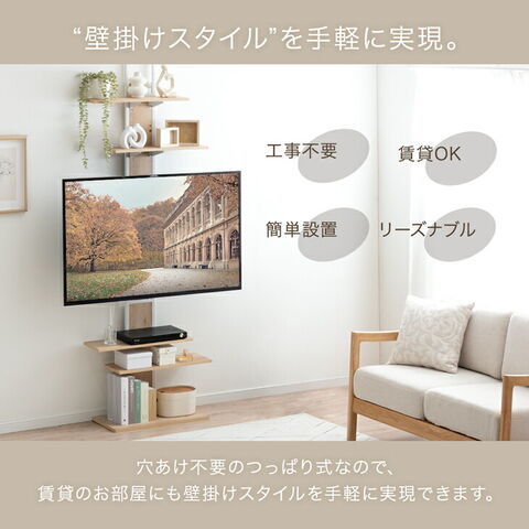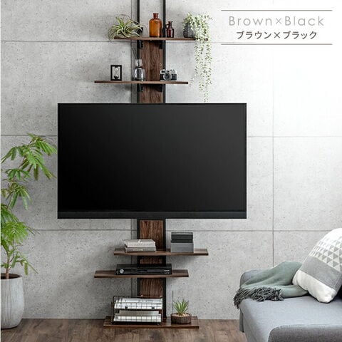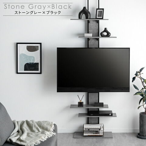 上下/左右首振 最大 50インチ 対応 つっぱり式 テレビスタンド 木目調 首振り テレビラック 壁寄せ テレビ台 突っ張り 角度調整 収納棚 収納 壁寄せ 壁面 壁面収納 ハイタイプ 84300045〔ストーングレー×ブラック〕【予約】1月上旬※1/11までに出荷予定