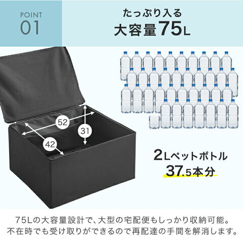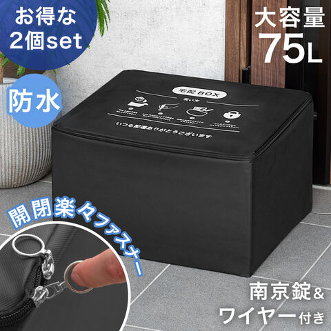 【お得な2個セット】 開閉楽々リングファスナー 折りたたみ 宅配ボックス 2個 セット 大容量 75L アンカー不要 マンション 戸建て 防水 鍵 ワイヤー付き コンパクト 盗難防止 セキュリティワイヤー おしゃれ 99993080