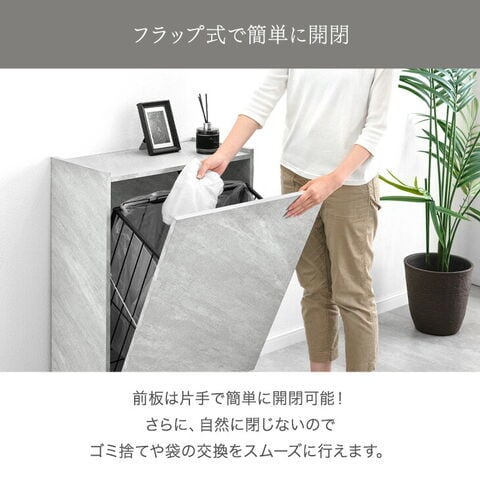 ・ゴミ箱に見えないスタイリッシュなデザイン ・フラップ式でラクラク開閉 ・天板にものを飾ってちょっとしたディスプレイにも ・お掃除ロボット対応の高脚設計 ・大容量90Lのゴミ袋対応 ・最大4分別可能 |