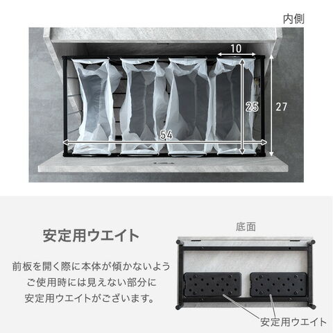 | 耐荷重 | 天板:約5kg ペール1個当たり:約4kg |