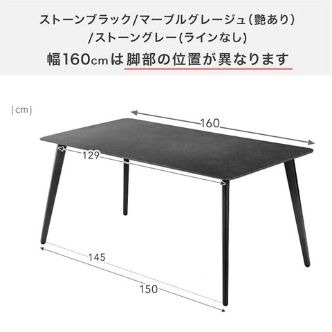 | 【後払い・時間指定不可】【組立品】【中国製】 ※セラミックは高温で焼き上げるため熱に強く、熱い鍋などを直接置いても変色や変形が起こりにくい高い耐熱性がありますが、天板の表面が熱くなるので鍋敷きなどの使用をおすすめします。 ※耐荷重100kgは、天板中央部に均等に荷重をかけた場合の目安です。一点に重い物を置いたり、腰掛けたり、踏み台として使用しないでください。 ※耐熱温度は、ゆるやかに加熱された場合の性能を示すものであり、急激な加熱・冷却に対する耐性(耐熱衝撃性)とは異なります。そのため、冷えた天板に高温の調理器具を置いたり、高温の天板に水や冷却物が付着したりしないようご注意ください。 ※2026年1月30日より幅160cmストーンブラック/マーブルグレージュ(艶あり)の、2026年2月9日より幅160cmストーングレー(ラインなし)の脚の位置を変更しております。 |