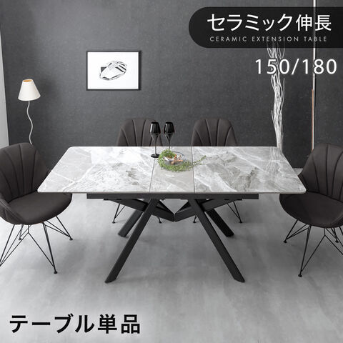 セラミック 伸長式ダイニングテーブル 150 180 鏡面 伸縮 伸長 エクステンション ダイニングテーブル 折りたたみ 長方形 テーブル 光沢 幅150 幅180 4人掛け 6人掛け 玄関渡し 【超大型】 85400002〔ストーングレー〕【予約】4月下旬※4/30までに出荷予定