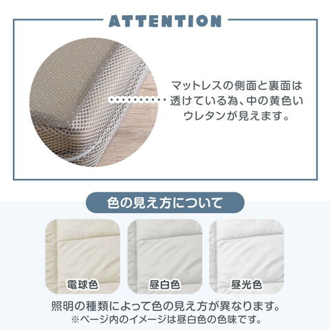 ※配送は全て宅配便(1人)での玄関渡しとなります。 ※お洗濯の際は洗濯ネットを使用してください。 ※マットレスは約1~2日で復元します。気温や温度により3~14日かかる場合もあります。 ※圧縮梱包のマットレスについて、ウレタンフォームの感温性(反発弾性フォームは温度が高くなると柔らかくなり、低くなると硬さが高くなる性質)により冬場、寒いところで復元させると、復元に時間がかかります。又、部分的に復元するタイミングが異なる場合がございます。室温が18度以上の部屋に半日くらいおくと、回復がしやすくなります。 ※布製品のため、サイズ表記に誤差が生じる場合がございます。あらかじめご了承ください。 |