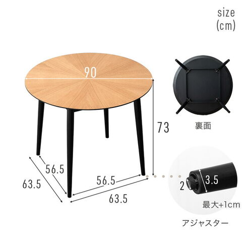 | サイズ | 【テーブル】 外寸:直径90x高さ73cm 【チェア】 外寸:幅53×奥行52×高さ75cm |