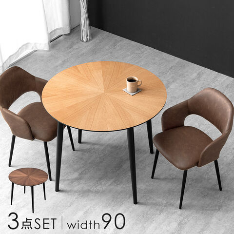 円形 ダイニングテーブルセット 2人掛け 3点 丸テーブル ダイニング チェア カフェテーブル 一人暮らし おしゃれ 北欧 木製 86010001〔テーブル:オーク/チェア:オールドブラウン(レザー)〕【予約】1月中旬※1/20までに出荷予定