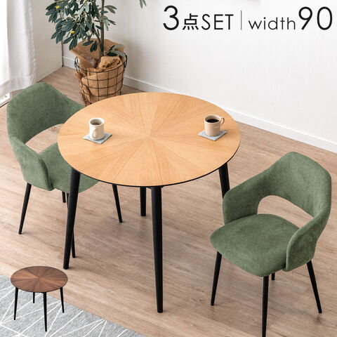 円形 ダイニングテーブルセット 2人掛け 3点 丸テーブル ダイニング チェア カフェテーブル 一人暮らし おしゃれ 北欧 木製 86010001〔テーブル:オーク/チェア:モスグリーン(ファブリック)〕【予約】1月中旬※1/20までに出荷予定