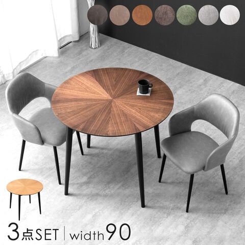 ▼天板の木目が違った円形ダイニングセットはこちら▼ |