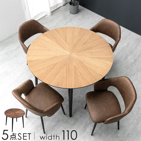 円形 ダイニングテーブルセット 4人掛け 5点 丸テーブル ダイニングセット テーブル チェア カフェテーブル【超大型】86010002〔テーブル:オーク/チェア:オールドブラウン(レザー)〕【予約】1月中旬※1/20までに出荷予定