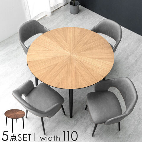 円形 ダイニングテーブルセット 4人掛け 5点 丸テーブル ダイニングセット テーブル チェア カフェテーブル【超大型】86010002〔テーブル:オーク/チェア:アッシュグレー(レザー)〕【予約】1月中旬※1/20までに出荷予定