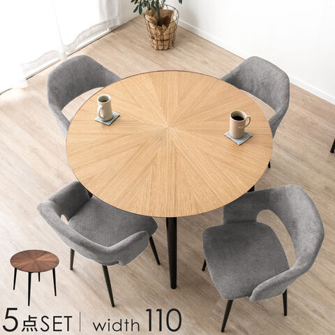 円形 ダイニングテーブルセット 4人掛け 5点 丸テーブル ダイニングセット テーブル チェア カフェテーブル【超大型】86010002〔テーブル:オーク/チェア:レドグレー(ファブリック)〕【予約】1月中旬※1/20までに出荷予定