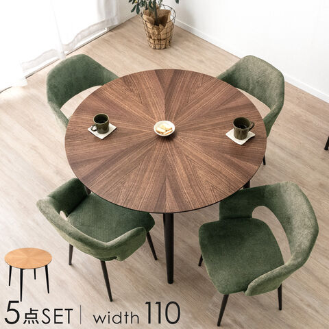 円形 ダイニングテーブルセット 4人掛け 5点 丸テーブル ダイニングセット テーブル チェア カフェテーブル【超大型】86010002〔テーブル:ウォールナット/チェア:モスグリーン(ファブリック)〕【予約】1月中旬※1/20までに出荷予定