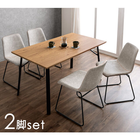 2脚セット ダイニングチェア リビング デスクチェア スチール脚 食卓椅子 リビング ダイニング カフェ風 レザー調 合皮 PU ミッドセンチュリー モダン おしゃれ 北欧 シンプル 86020080〔ライトグレー〕
