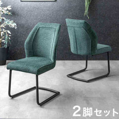 ダイニングチェア 同色 2脚セット カンティレバーチェア クッション 背もたれ ハイバック ダイニング デスクチェア キャスターなし 椅子 おしゃれ 布 ファブリック レザー調 86020088 〔フォレストグリーン〕