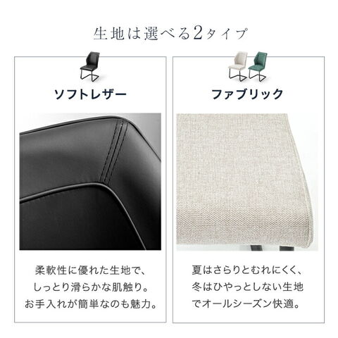 ・心地よいゆらぎを生む カンティレバーチェア ・もっちりウレタン座面&背もたれ ・座面は選べる2タイプ ┗オールシーズン快適ファブリック ┗水や汚れに強いPUレザー ・スタイリッシュなスチール脚 |