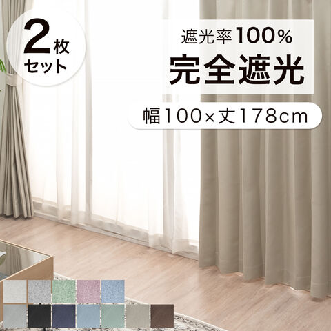 完全遮光 カーテン 2枚セット 幅100cm 丈178cm 遮光カーテン 1級遮光 遮光 洗濯 可 アジャスター フック タッセル 既成 ドレープカーテン UVカット 防音 遮音 断熱 遮熱 厚手 無地 86500021〔アイボリー(ブロード)〕【予約】12月中旬※12/20までに出荷予定