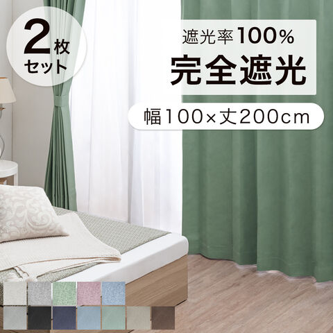 【即納】 完全遮光 カーテン 2枚セット 幅100cm 丈200cm 遮光カーテン 1級遮光 遮光 洗濯 可 アジャスター フック タッセル 既成 ドレープカーテン UVカット 防音 遮音 断熱 遮熱 厚手 無地 86500023〔セージグリーン(ブロード)〕