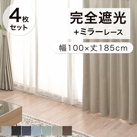 【即納】 完全遮光 カーテン 4枚セット 幅100cm 丈185cm 遮光カーテン 1級 遮光 洗濯 可 レースカーテン ミラーレース レース 透けない アジャスター フック タッセル 既成 ドレープカーテン UVカット 断熱 遮熱 86500030〔アイボリー〕