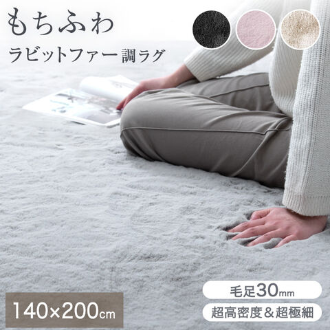 【即納】 洗える フェイク ラビットファー 毛足 30mm 暖かい 厚手 無地 ラグ カーペット じゅうたん 滑り止め 起毛 シャギー ムートン ボア ファー かわいい シンプル 北欧 87250096 〔ライトグレー〕