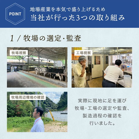 九州にある「タンスのゲン」が、地場産業の振興のため、九州の山の上にある牧場と共同開発! 搾りたて牛乳をすぐアイスに!アイス食べ比べセット YAMA 日本の牛乳は、おいしいです。一方で現在、国内の酪農の経営は厳しく、農家の9割が赤字経営と言われてます。酪農産業の6次化が未来を作る。今回、タンスのゲンは九州における酪農産業の6次化の先駆けである牧場の"横尾さん"とタッグを組みました。 横尾さんは1967年に佐賀県で酪農を開始。最初は牛を育て、生乳を絞って大手メーカーに原料として渡すだけの牧場でしたが1988年に「自分が育てた牛だけのおいしい牛乳を作る!」と小さな加工工場を作り、飼育から牛乳の加工まで、一連の工程を牧場でできるようにしました。こだわりの牛乳を原料に、ヨーグルトやアイスクリーム、チーズなど、原料生産、加工製造、商品化までを自社で一貫して行っています。 今回の製品は、そんな横尾さんとタンスのゲンの共同開発で生まれました。 ホワイトベースの導入、ミルク味の導入、生乳を損なわないフレーバーを選定など、牛乳のおいしさが伝わる食べ比べにこだわりました。 ・「地域特産リデザイン」対象商品 ・本製品限定!2ベース×4フレーバーの8種 …リッチな味わい 卵黄入りイエローベース …さっぱりおいしい 卵黄なしホワイトベース …気分に合わせてチョイス!ミルク/バニラ/抹茶/ストロベリー ・飼育~製造までひとつの牧場で一貫 ・自然の風味を守る低温長時間殺菌 ・牛乳本来の風味を活かすノンホモ仕上げ ・人工香料、着色料、増粘剤不使用 ・ギフトにもぴったりな化粧箱入り ※「地域特産リデザイン」は、九州・福岡県で活動するタンスのゲンの地域貢献型の製品開発の取り組みです。地域特産品をインターネットで販売するためにリデザインすることで地域と日本・世界をつなぐことができるとタンスのゲンでは考えています。今後も家具にとどまらず、九州の地域特産品を全国・世界に届けるような取り組みを行っていきます。 |