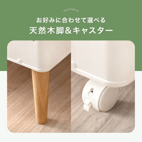 | 素材 | 本体:バージンPP、HIPS 木脚:天然木(ケヤキ) キャスター:PP 取っ手:TPE 耐熱温度…120度 耐冷温度…-20度 |