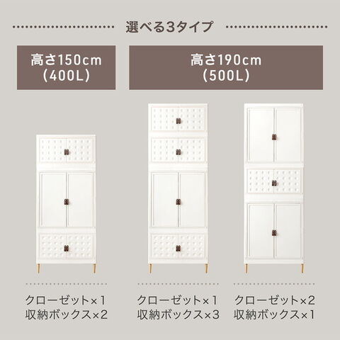 400L:幅43x奥行43x高さ71cm 500L(1クローゼットタイプ):幅53x奥行51x高さ72cm 500L(2クローゼットタイプ):幅53x奥行56x高さ72cm |