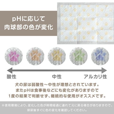 お家で簡単に健康チェック!pH測定ペットシーツ └おしっこのpHに応じて色が変化 ・ワンちゃんに合わせて選べる2サイズ ・ISO認定工場で生産された安心の品質 |