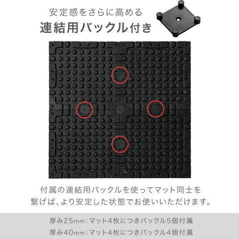 硬質 ゴムマット 硬度65 25mm厚 4枚 ジム トレーニング ゴムチップマット フロアマット 防水 防音 傷防止 頑丈 厚手 ラバーマット 筋トレ エクササイズ 91700001〔ブラック〕【予約】1月中旬※1/20までに出荷予定