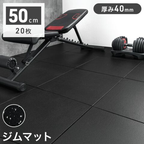 【即納】 硬質 ゴムマット 硬度65 40mm厚 20枚 ジム トレーニング ゴムチップマット フロアマット 防水 防音 傷防止 頑丈 厚手 ラバーマット 筋トレ エクササイズ 99901116〔ブラック〕