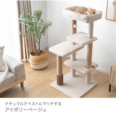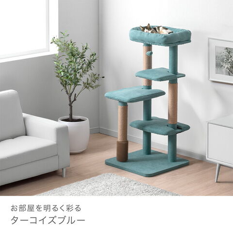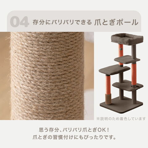 【新発売プライス】 洗えるカバーリング 清潔 キャットタワー 120cm 据え置き 爪とぎ 猫タワー 置き型 多頭買い 麻紐 猫 キャットハウス キャットツリー 紐付き スリム 省スペース 92700001〔クラウドグレー〕【予約】4月下旬※4/30までに出荷予定