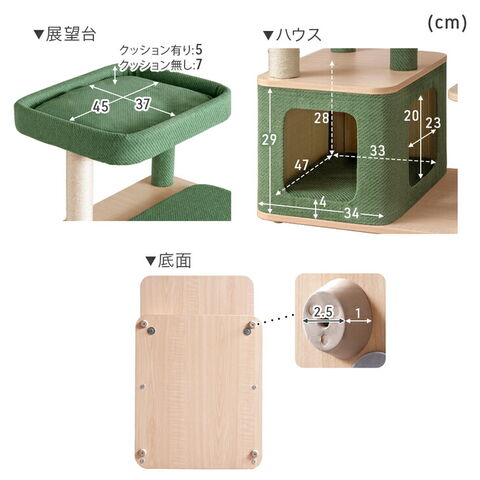 ・シニア猫でも安心 無理ニャくのぼれるキャットタワー ・乗り降りしやすいロー&ワイドステップ ・ステップは足腰に優しいふわふわマット付き ・踏み外しにくい、距離を抑えたステップ間隔 ・高いところから見渡せる展望台 ・クッションは丸洗いOKでいつでも清潔 ・爪とぎしやすい、長めの爪とぎポール ・落ち着いて過ごせるハウス ・安心・安全の角丸設計 ・簡単に設置できる据え置きタイプ |