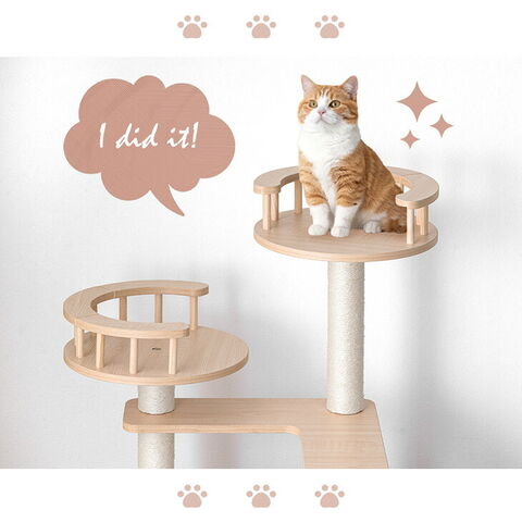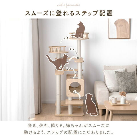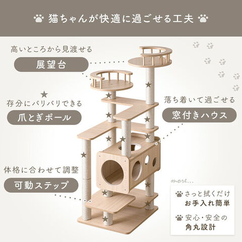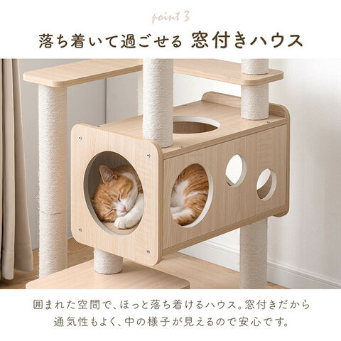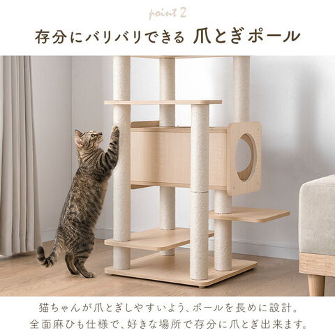 【新発売プライス】 キャットタワー 木製 134cm 据え置き 木目調 爪とぎ 猫タワー キャット タワー 置き型 多頭飼い 麻紐 高齢 大型猫 短足猫 子猫 キャットハウス キャットツリー 隠れ家付き 省スペース 92700005【予約】4月下旬※4/30までに出荷予定
