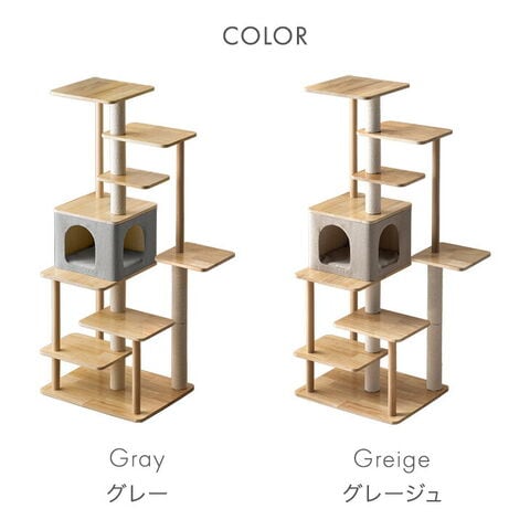 【新発売プライス】 天然木 キャットタワー 木製 147cm 据え置き 爪とぎ 猫タワー 置き型 多頭飼い 綿紐 キャットハウス キャットツリー 木 遊び場 隠れ家付き 運動 省スペース スリム おしゃれ 92700006〔グレージュ〕【予約】4月下旬※4/30までに出荷予定