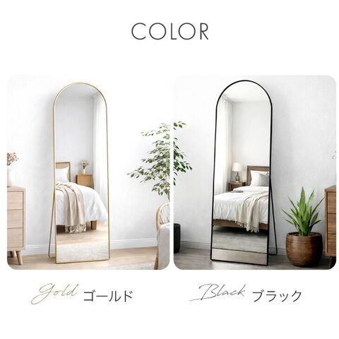 【新発売プライス】アーチ型 全身鏡 80×160cm 強化ガラス 飛散防止加工 スタンド付き 軽量 姿見 全身鏡 アーチ ウォールミラー スタンドミラー スタンド 壁掛け 立て掛け 飛散防止【超大型】93700003〔ゴールド〕【予約】6月上旬※6/10までに出荷予定