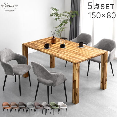 天然木 アカシア ダイニングテーブル セット 4人掛け 肘付き チェア 5点セット 長方形 食卓テーブル 北欧 おしゃれ【超大型】99900022〔テーブル脚:ナチュラル/チェア:レドグレー(ファブリック)〕