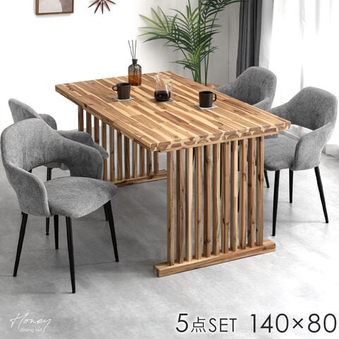 格子脚 天然木 アカシア ダイニングテーブルセット 4人掛け 5点セット ダイニングセット チェア 食卓テーブル 格子【超大型】99900023〔テーブル:ナチュラル/チェア:レドグレー(ファブリック)〕