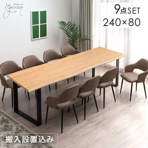 【テーブル搬入設置込】 幅240cm ダイニングテーブルセット 8人掛 9点 長方形 ダイニングセット テーブル チェア【超大型】99900035〔テーブル:ナチュラル/チェア:オールドブラウン(レザー)〕【予約】1月上旬※1/11までに出荷予定