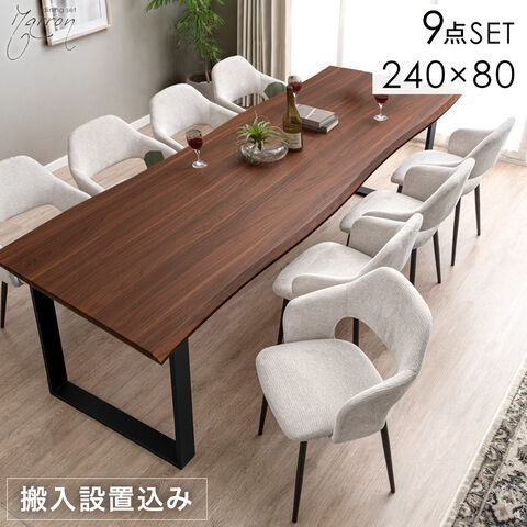 【テーブル搬入設置込】 幅240cm ダイニングテーブルセット 8人掛 9点 長方形 ダイニングセット テーブル チェア【超大型】99900035〔テーブル:ブラウン/チェア:アイボリー(ファブリック)〕【予約】12月下旬/入荷後2~4週間でお届け