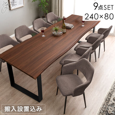 【テーブル搬入設置込】 幅240cm ダイニングテーブルセット 8人掛 9点 長方形 ダイニングセット テーブル チェア【超大型】99900035〔テーブル:ブラウン/チェア:ショコラブラウン(ファブリック)〕【予約】12月下旬/入荷後2~4週間でお届け