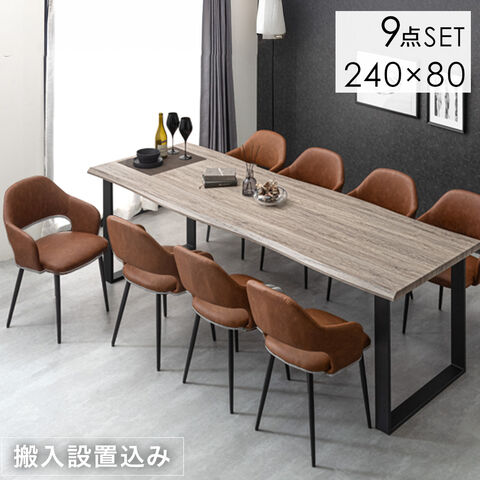 【テーブル搬入設置込】 幅240cm ダイニングテーブルセット 8人掛 9点 長方形 ダイニングセット テーブル チェア【超大型】99900035〔テーブル:グレー/チェア:レトロキャメル(レザー)〕【予約】12月下旬/入荷後2~4週間でお届け