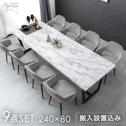 【テーブル搬入設置込】幅240cm 石目調 ダイニングセット 8人掛け 9点 長方形 テーブル チェア 大人数【超大型】99900036〔テーブル:マーブルホワイト/チェア:レドグレー(ファブリック)〕