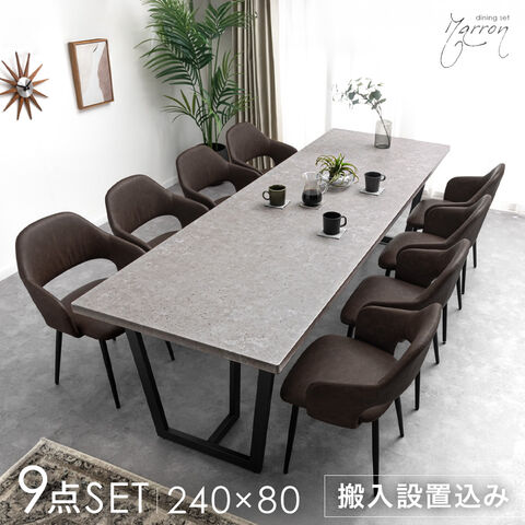 【テーブル搬入設置込】幅240cm 石目調 ダイニングセット 8人掛け 9点 長方形 テーブル チェア 大人数【超大型】99900036〔テーブル:ストーングレー/チェア:ブラウニーブラック(レザー)〕【予約】1月下旬※1/31までに出荷予定