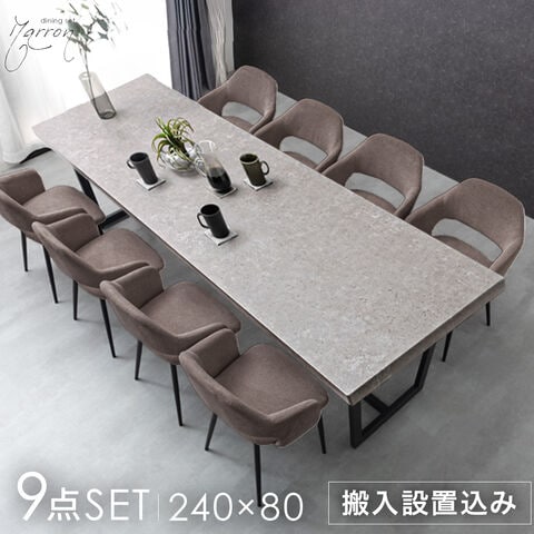 【テーブル搬入設置込】幅240cm 石目調 ダイニングセット 8人掛け 9点 長方形 テーブル チェア 大人数【超大型】99900036〔テーブル:ストーングレー/チェア:ショコラブラウン(ファブリック)〕【予約】1月下旬※1/31までに出荷予定