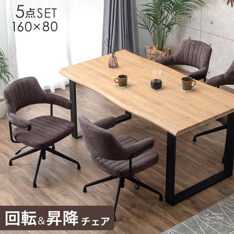 お掃除ロボット対応 ダイニングセット 回転 昇降 チェア 4人掛け 長方形 テーブル ハンギングチェア 北欧 おしゃれ 【超大型】99900039〔テーブル:ナチュラル/チェア:ショコラブラウン(ファブリック)〕【予約】5月上旬※5/10までに出荷予定